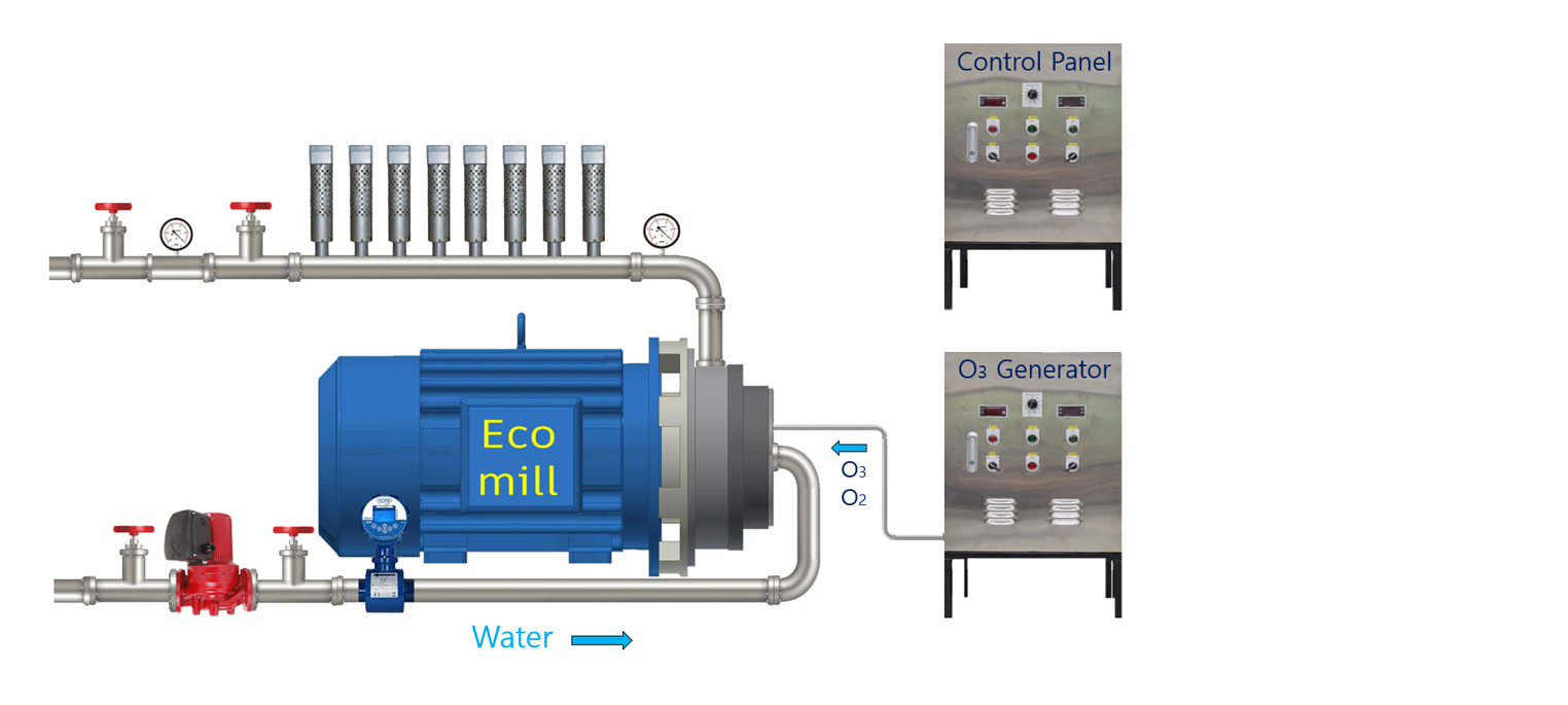 에코 밀링 머신은 기포 분쇄 장비이며 초당 3천만 번 이상 미세 충돌이 일어나며 기포 생성 + 분쇄가 동시에 발생합니다.